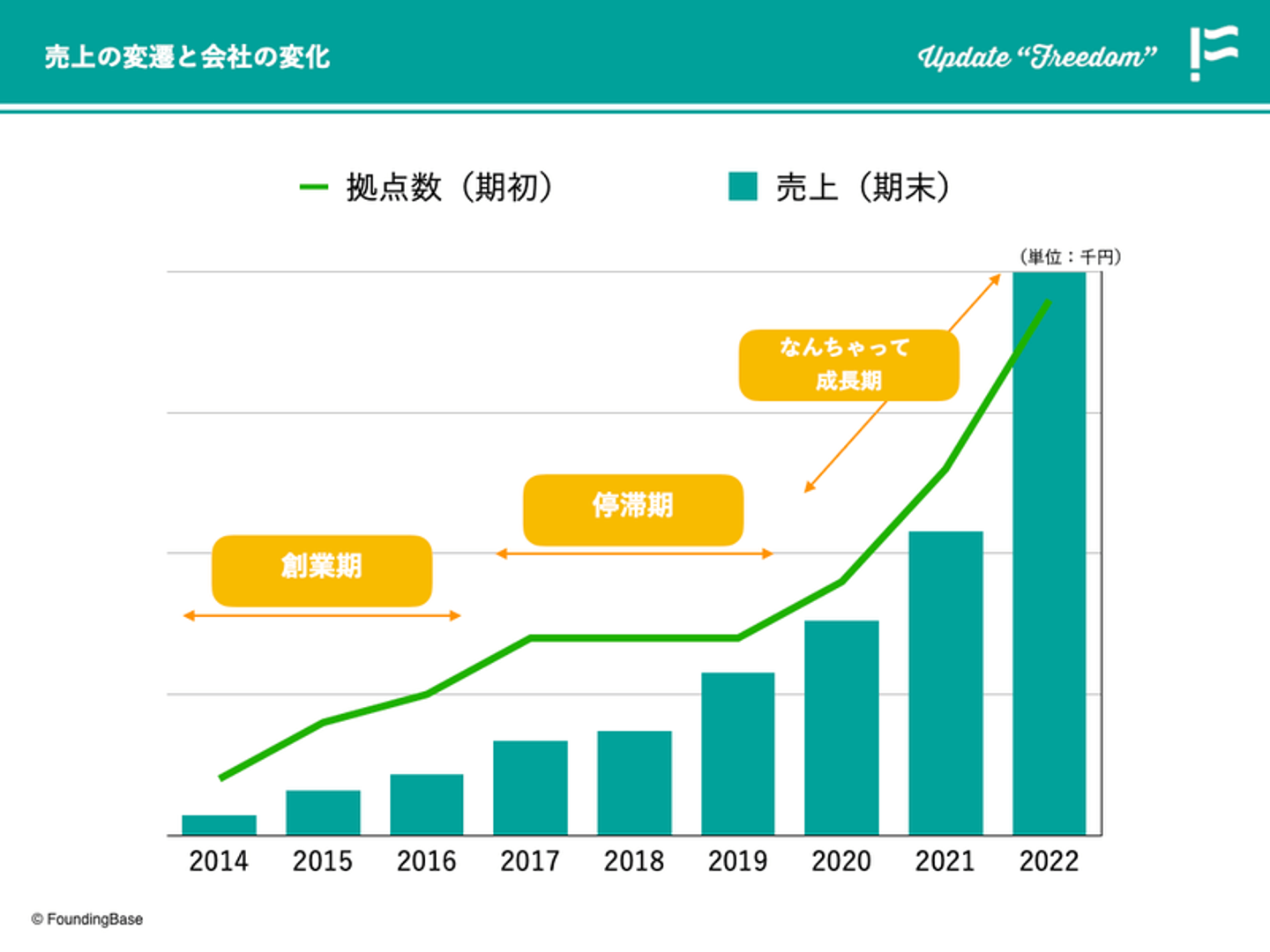 ありがたいことに、この数年で売上・拠点数ともにほぼほぼ目標どおりに伸長させることができました。