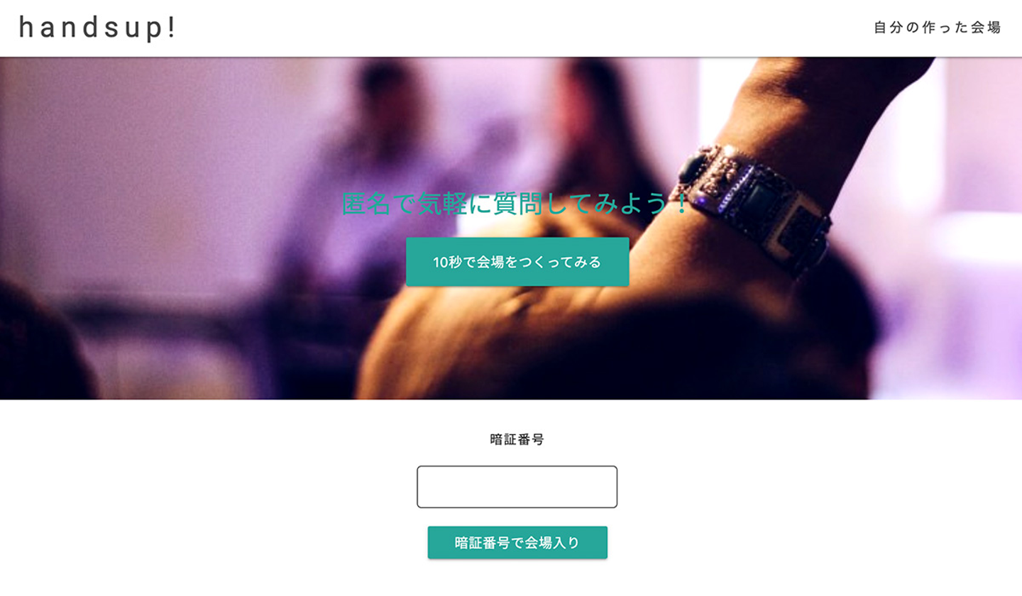 匿名リアルタイム質疑応答サービス「handsup!」
