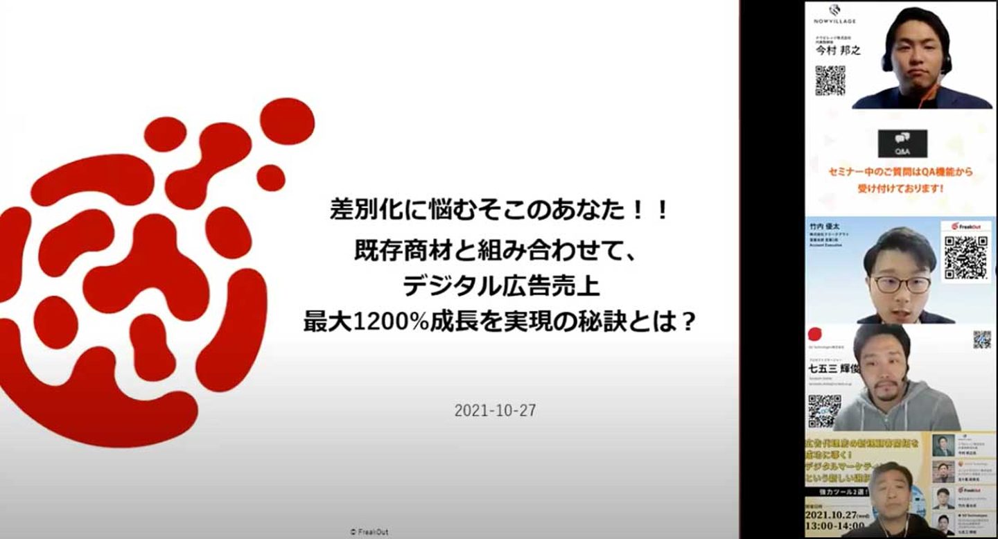 2021/10/27(水)に行われた、『広告代理店の新規顧客開拓を成功に導く!デジタルマーケティングという新しい選択肢。』に弊社Account Executiveの竹内が登壇しました!