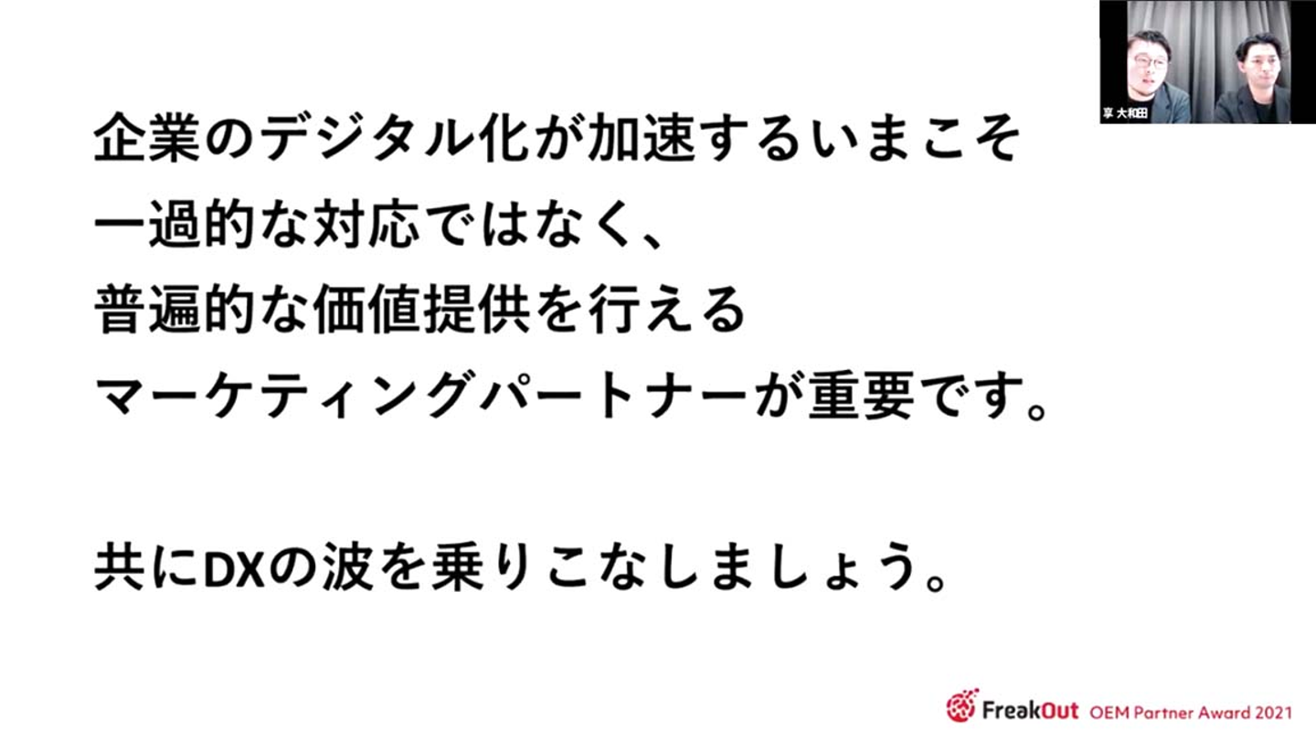 OEMパートナー様向けのウェビナー、「FreakOut OEM Partner Award 2021」をオンラインにて開催いたしました。