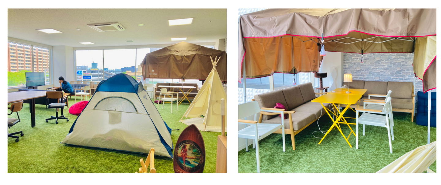 また、社長のお気に入りスポットが右写真のテントです! 推しポイントを社長に聞いてみました!