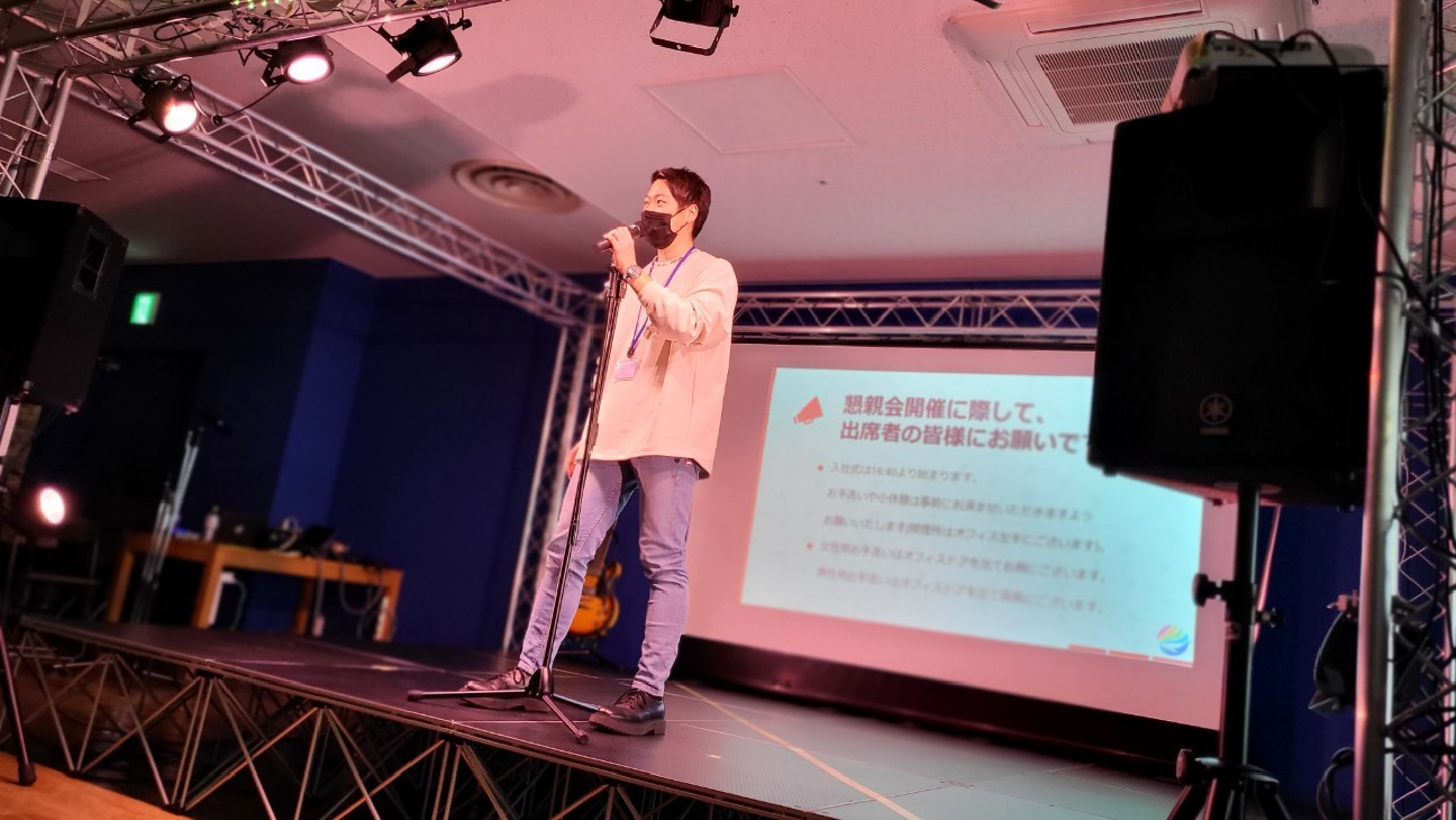 4月に行われた入社式では、大活躍! このステージ上で、入社式の余興や記念撮影などが行われ、大盛況をおさめました!!