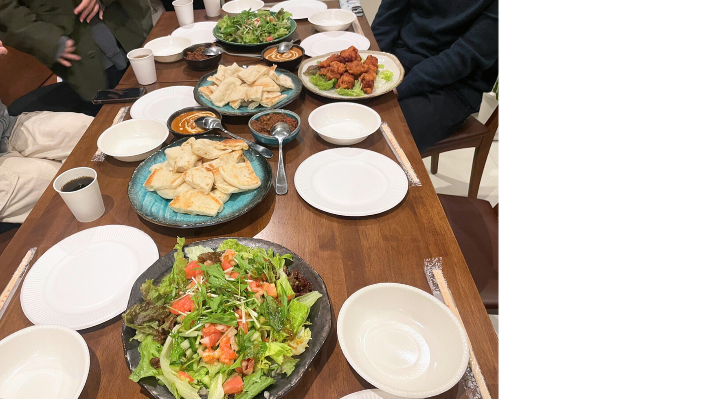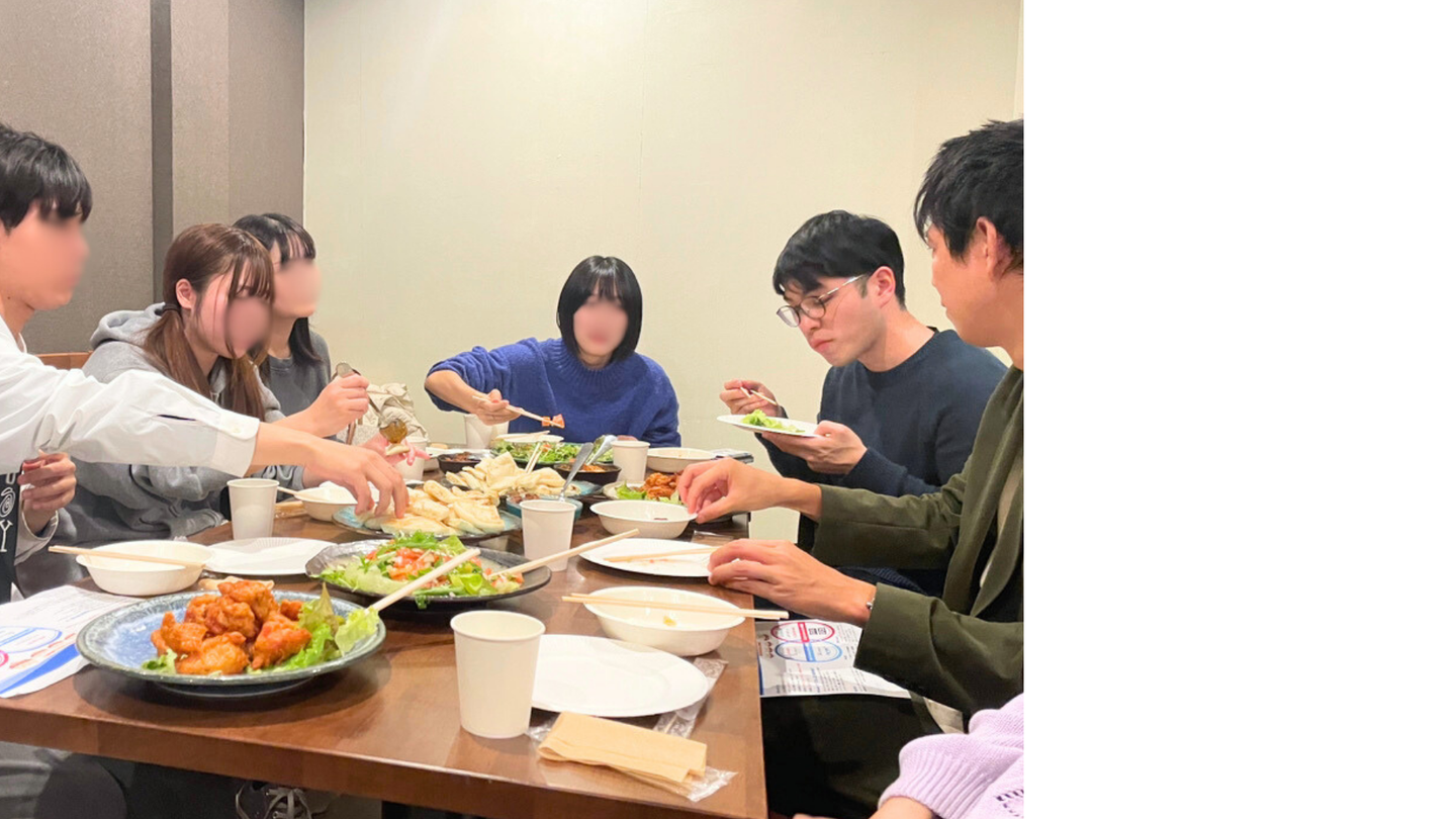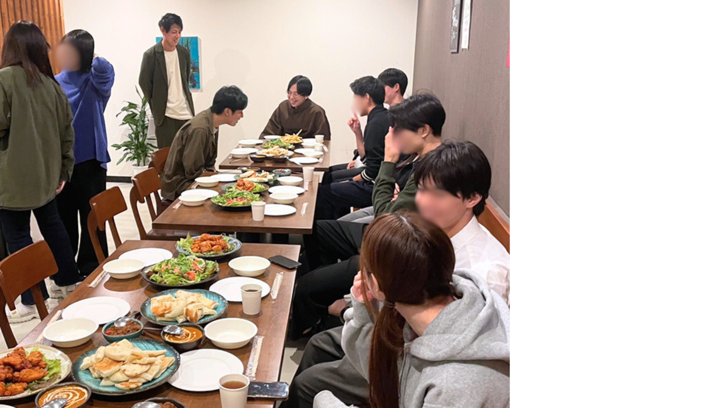 料理を食べ進めながら、まず初めに参加社員から自己紹介と簡単な会社紹介を行いました!