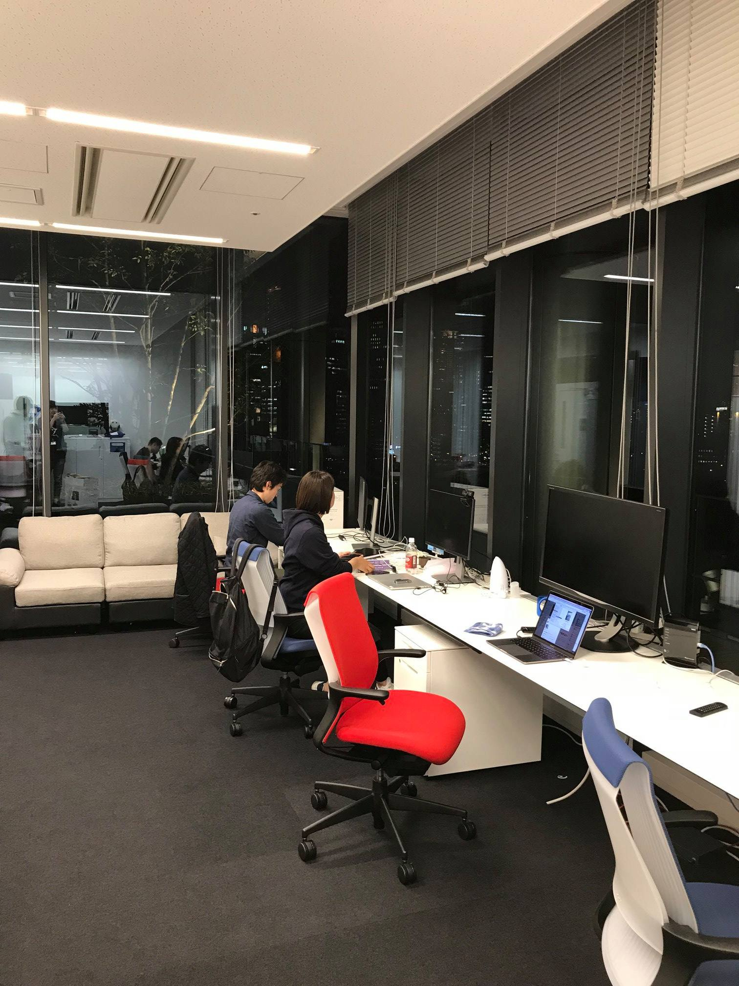 執務スペースはすっきりとしたイメージですが、窓からは大阪駅周辺の夜景も見えるんですよ