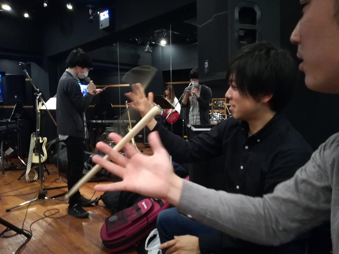 また日によってスタジオに来るメンバーも違うため、その日不在のパートをその場で弾いてもらうことはよくあるそう。この時も最初はベースを弾いていたメンバーが次の曲でギターを弾いていました。2つ以上の楽器をこなすなんて、す、すごい....