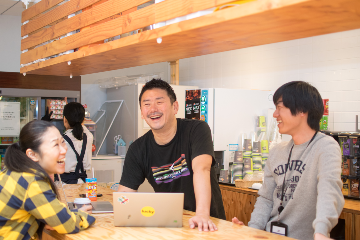 freeeのラウンジスペースでは、いつもカウンターを囲んで、誰かがコーヒーやジュースを飲みながらお喋りしてるんですよ(笑)経営陣がホストとなってそういう場を作れれば、カジュアルな雰囲気で、自分たちの人となりを理解してもらうきっかけが作れるんじゃないかとイメージが湧きました。」(関口)