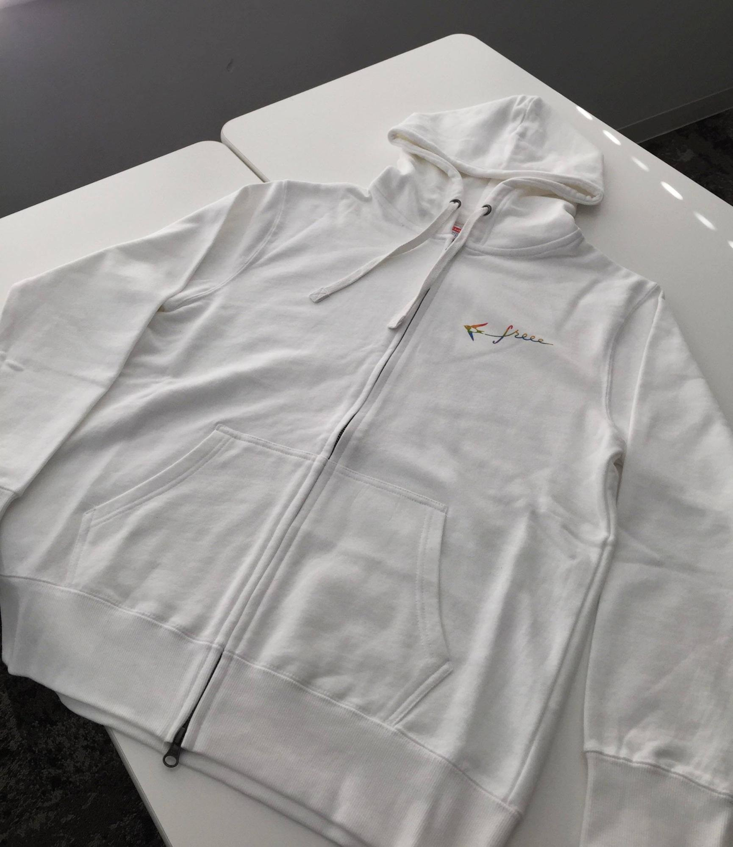 freeeでは、Tシャツだけではなく、毎年冬にロゴ入りパーカーを制作しています。