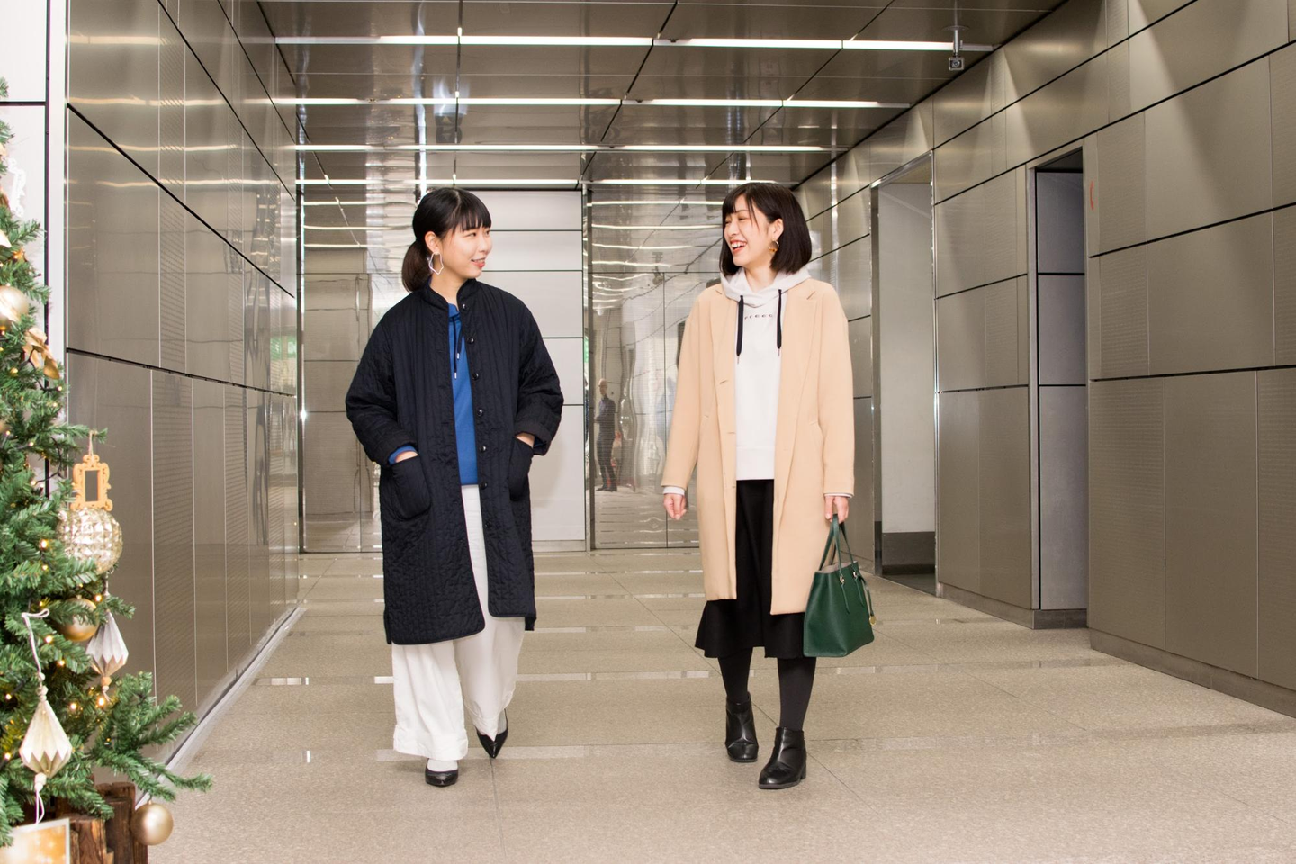 高宮:デザインもこだわっていて、まずは女性社員の皆さんからでた意見を反映して身丈短めにしました。さらにフードの生地を2重にすることで、上品さを演出。裏地が見えません。またアームホールを小さめに仕立てているので、アウターを着てもかさ張らないデザインになっています。
