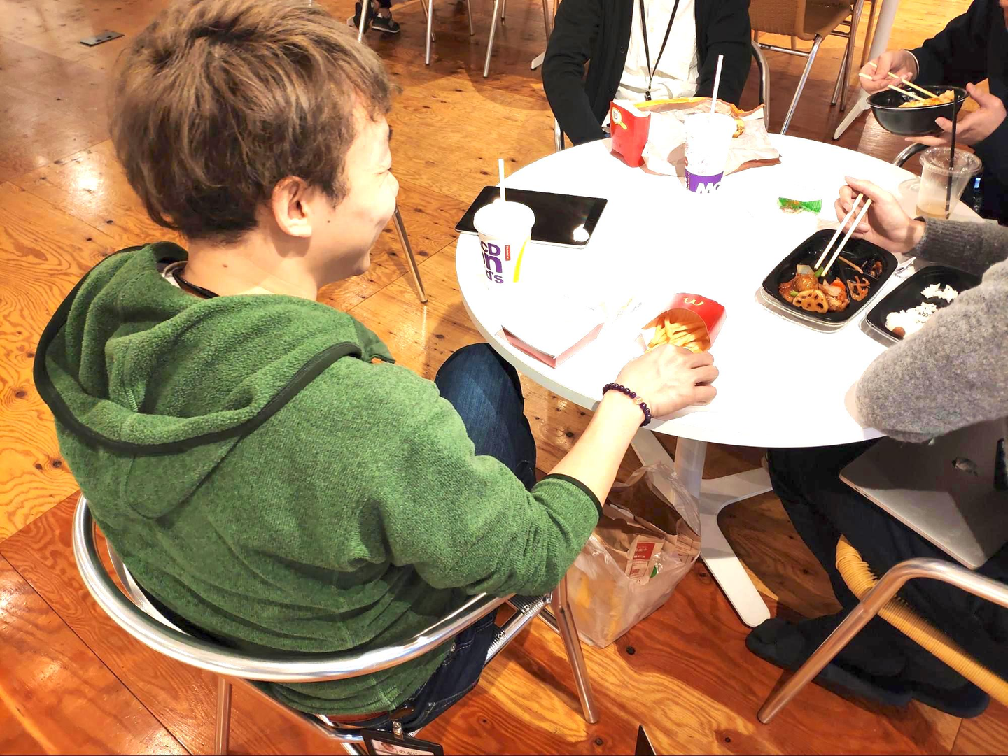 C:雑談は多くはないです。結構みんな集中してがーっとやる感じです。割と静かだと思います。ビジネスメンバーと比べると静かだと思います。