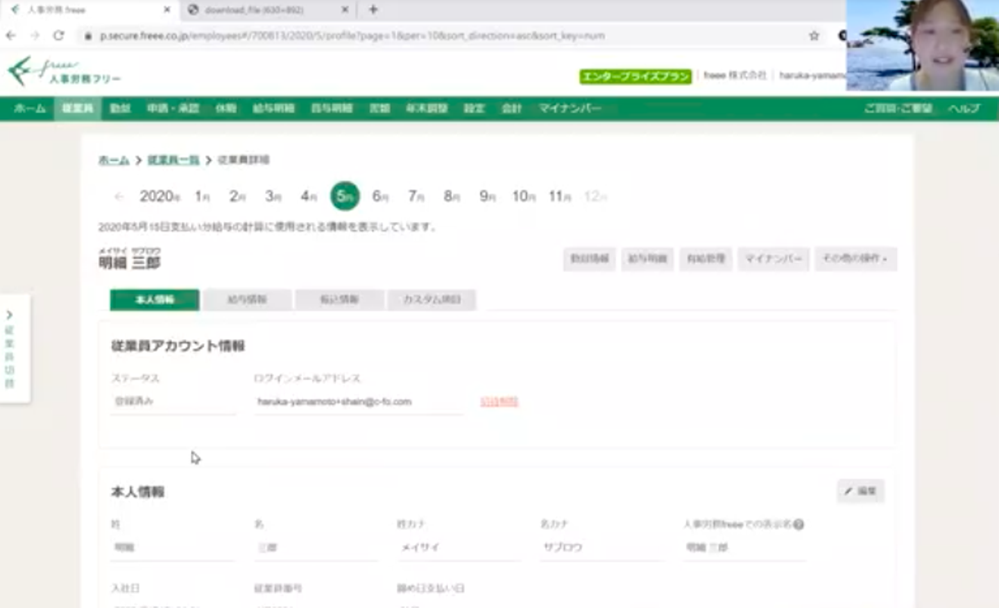 HR部門で優勝した山本は、人事労務freeeの最新の便利な機能を使ったわかりやすいデモを行いました。