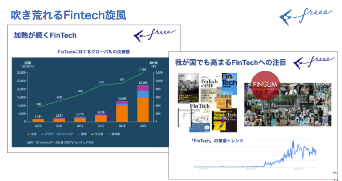 それから世の中にフィンテック旋風が吹き、どのように銀行はフィンテックに対応するのかということが世間の話題になりました。2015-17年にかけて、freeeは住信SBIネット銀行を皮切りに、多くの銀行とAPI連携を行いました。