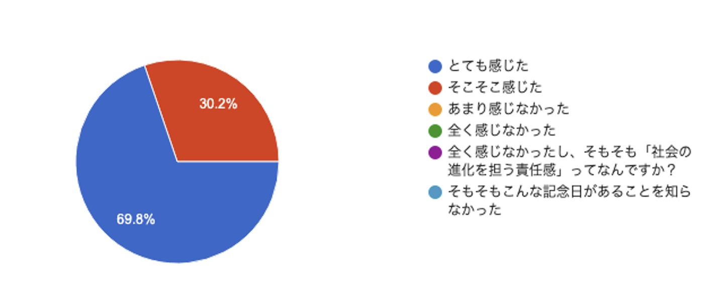 アンケートでも、「自分たちの日々の業務が社会の進化に繋がっている」と感じられた人が100%という結果になりました。