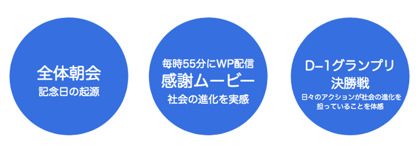 みんな一人ひとりが確かに社会を進化させているという実感を持ち、互いの日々の取り組みの積み重ねが今日までの社会進化を支えてきたことに感謝できる日にすることを目的に『社会の進化を担う責任感謝祭』の開催に至ったのです。