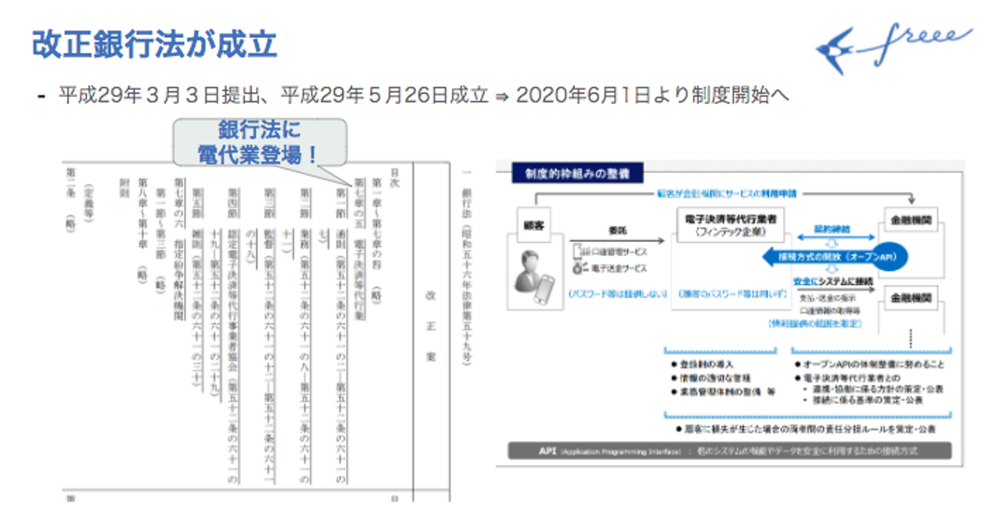 また、この法律の中で新しく、電子決済等代行業者(=銀行と接続できる業者)というものが法律上定義され、freeeはその第一号として金融庁に登録されました。それはfreeeのセキュリティ面が高く評価された結果でした」