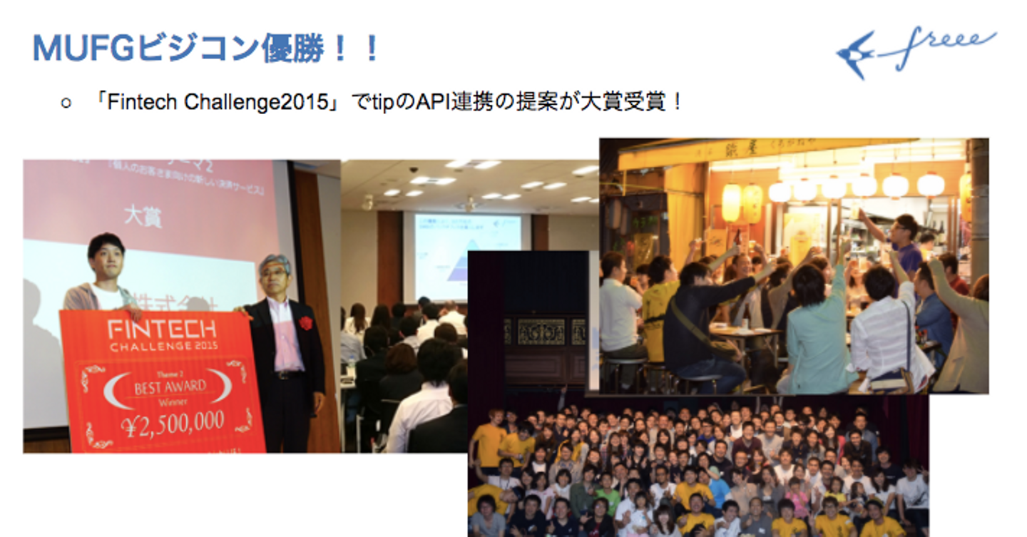 佐々木「転機が訪れたのは、2015年。MUFGのビジコンで、freeeメンバーの藤崎がAPI連携を提案してグランプリを獲ったんです。そこでMUFG側からも『API連携を目指して頑張ります』とのお言葉をいただきました。