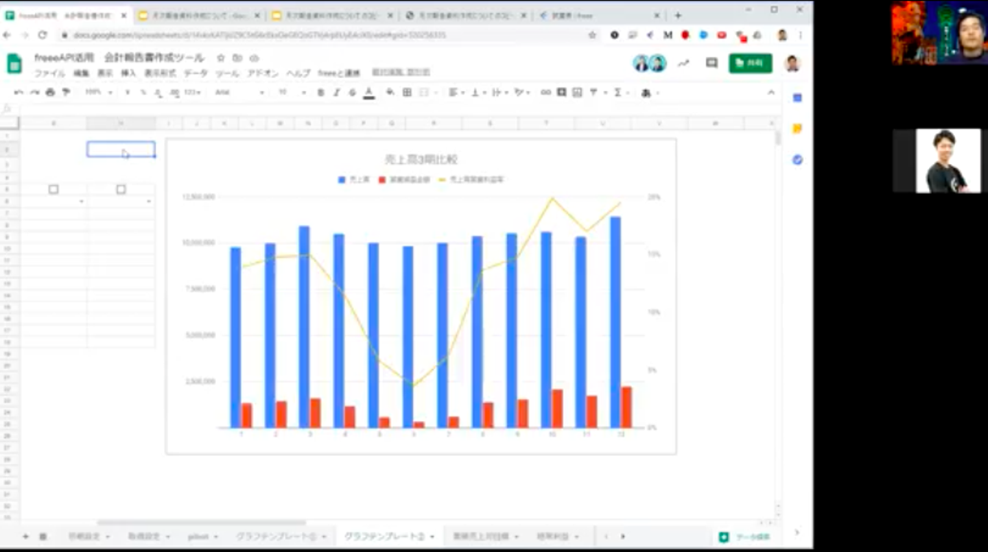 API部門では、田中がAPI連携したスプレッドシートを用いて顧問先報告資料作成のデモを行なってくれました。