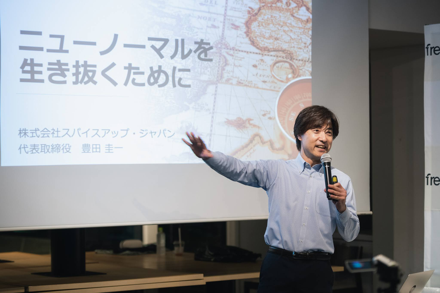 『ニューノーマル時代の適者生存』の著者でもある豊田さんには、「withコロナの“ニューノーマル時代”をどう生き抜くか」をテーマに講演いただくこととなりました。