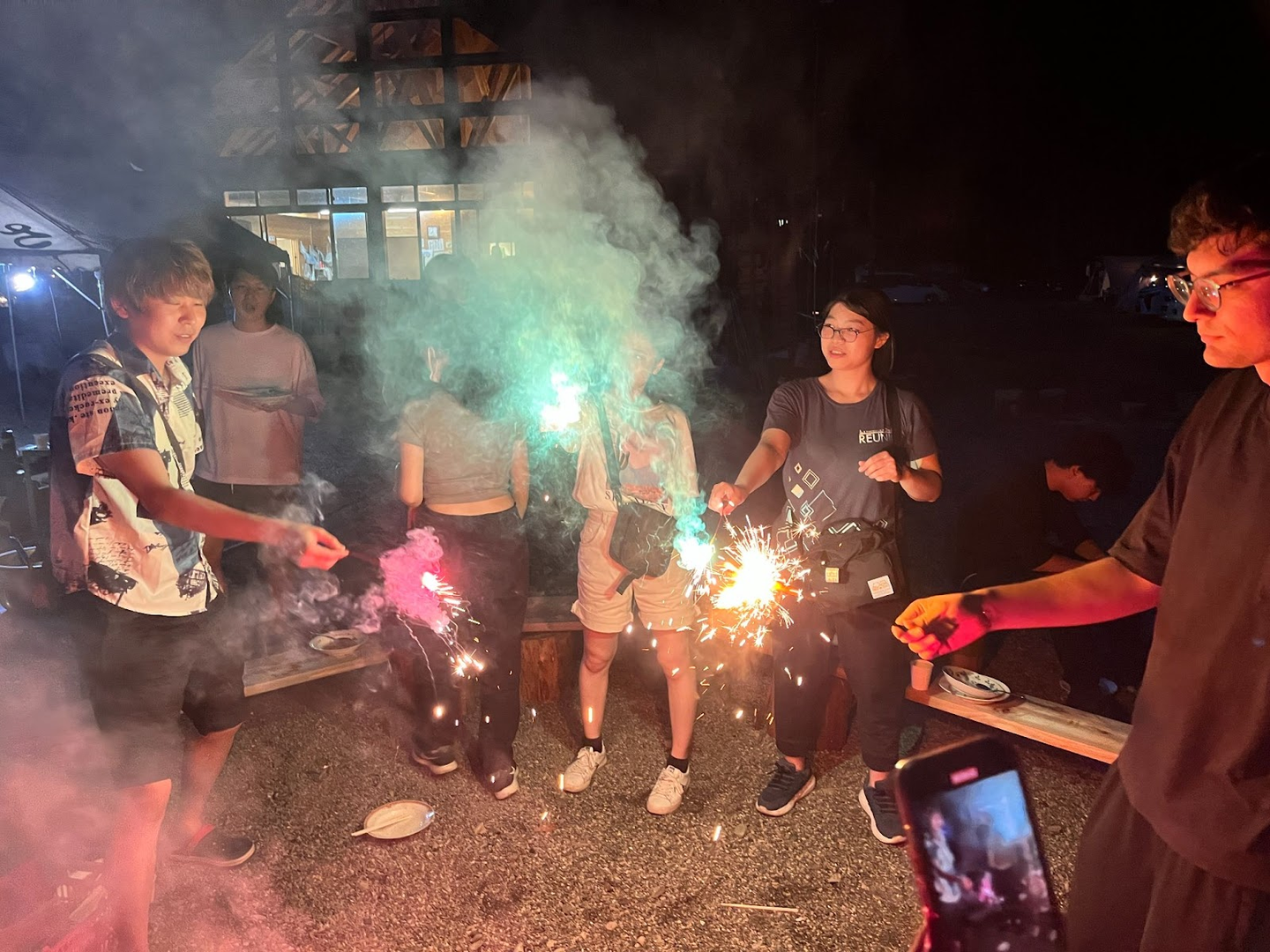 合宿の最後を締めくくるのはキャンプファイヤーと花火。最高の締めに最適だと思わないですか?自然に触れ、人と出会い、色々体験し、知識を高め、それで人間は成⾧する。今まで、絶対に体験できないことも経験出来ました。