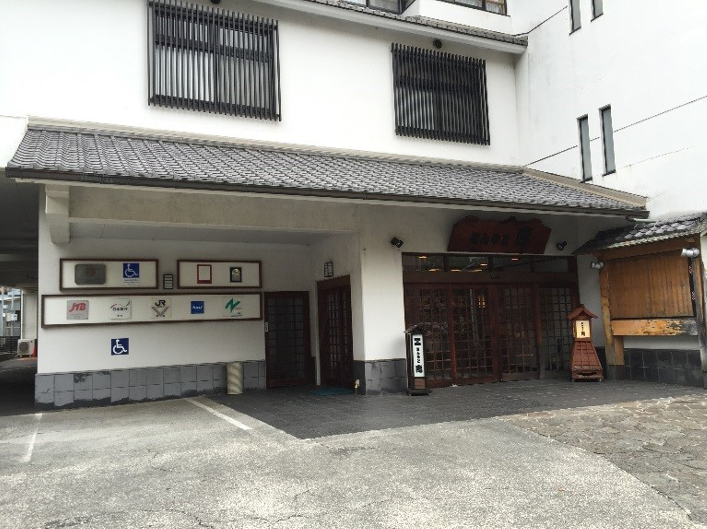 玄関から温泉宿感があります。
