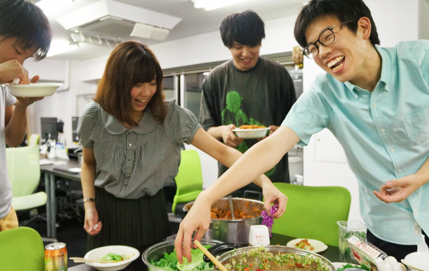 ちなみにこの料理部は、採用前のコミュニケーションの場としても活用されています。代表の清水さんが常々言っているのは、『入社してから”想像していたイメージと違った”となるのは、会社も入社した人もお互いに不幸』ということ。そのため、よく採用候補者をゲストとして招待し、リアルなカルチャーに触れてもらっています。会社の雰囲気や、メンバーがどんな人達で、どんなふうに働いているかなど、直接会話をして体感してもらう機会を作ることが目的です。