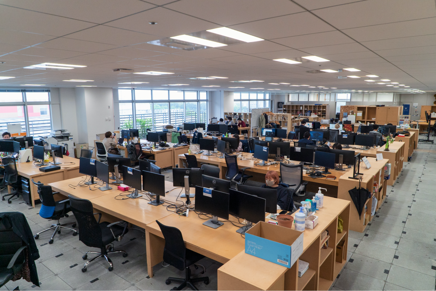 基本的にはみんなフリーアドレスで、職域上固定席が望ましい一部のメンバーだけ、固定席で作業をしています。