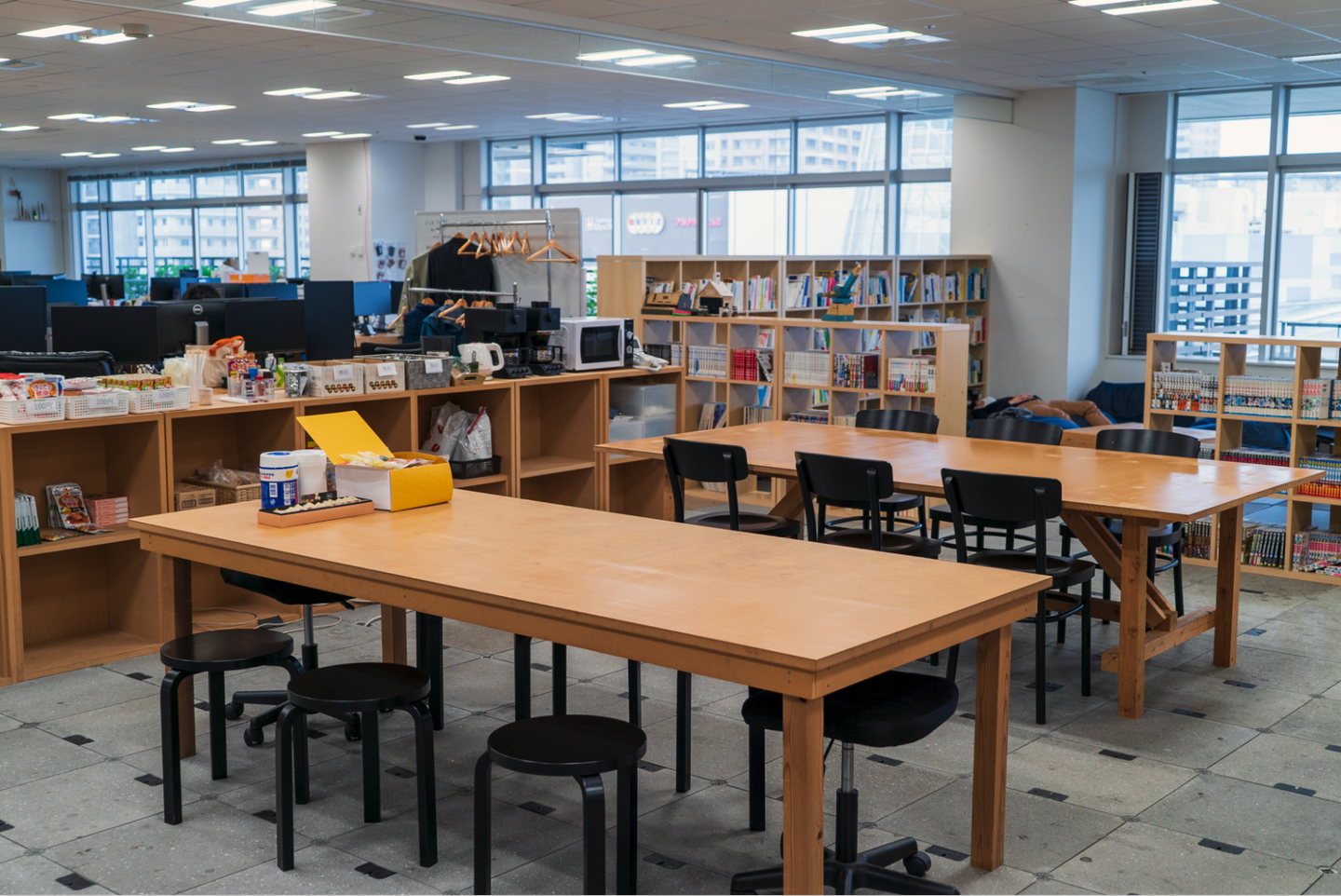 個人的に一番気に入ってる場所は、ランチテーブルです。なぜかと言うと、あそこは位置的に、他のスペースに行く際かならず通ることになるから。