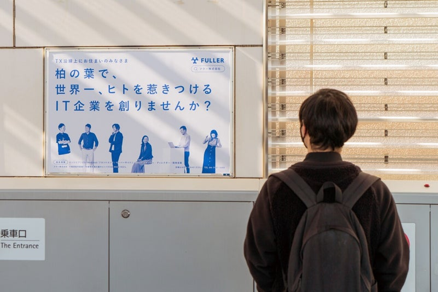 5路線が乗り入れているターミナル駅にも私たちのメッセージを掲示することで、より多くの人にフラーを知っていただき、いつか私たちと一緒に「世界一、ヒトを惹きつける会社」を作ってくれる人との縁に繋がるよう願っております。