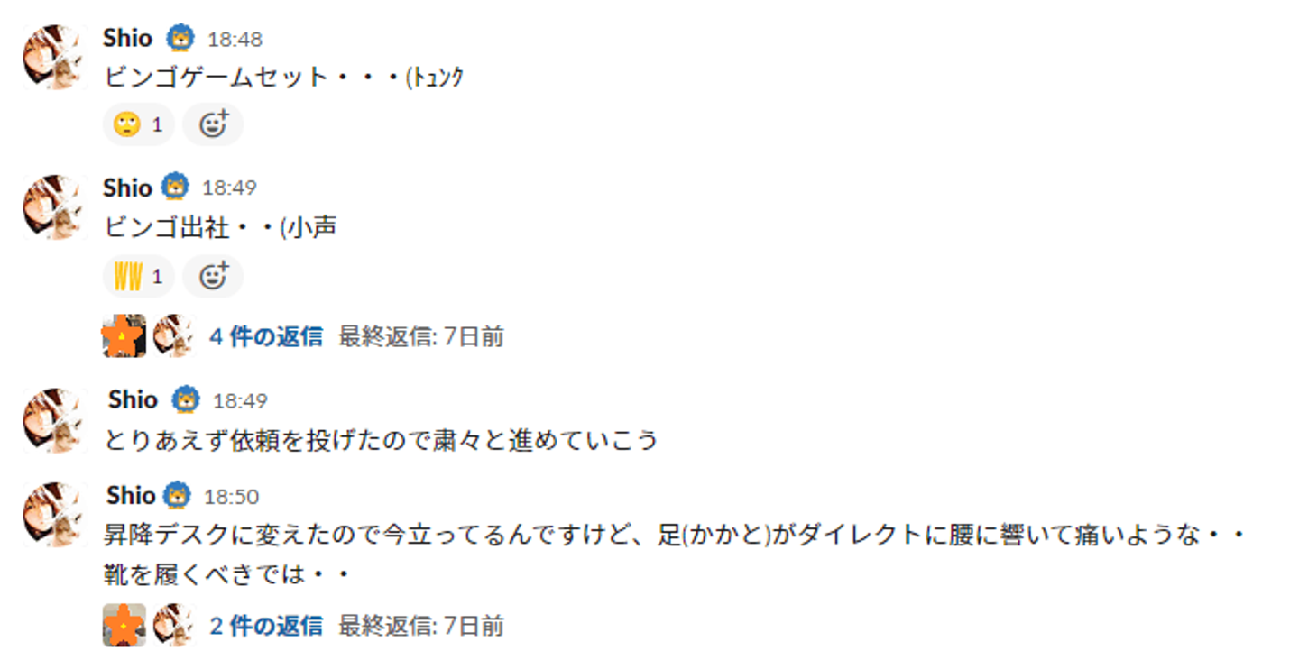 そこで好きなことをつぶやいたりできますし、他のメンバーのつぶやきに反応したりコメント入れたりすることでコミュニケーションもとい雑談をしたりしています。最近また新しい雑談のばが増えたので、記事にしたいですね~!