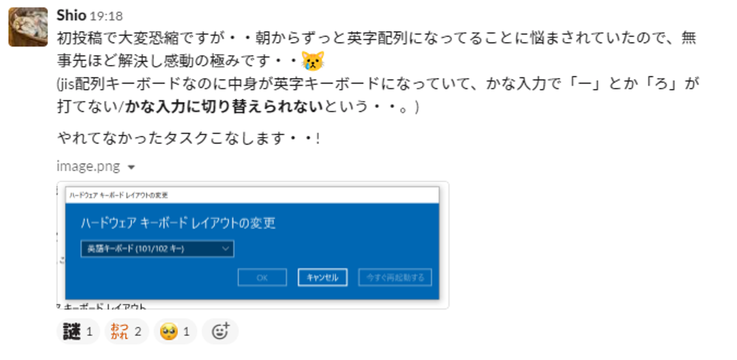 オリエンの内容をメモしようとしたらPCのキーボードがどうもおかしい。