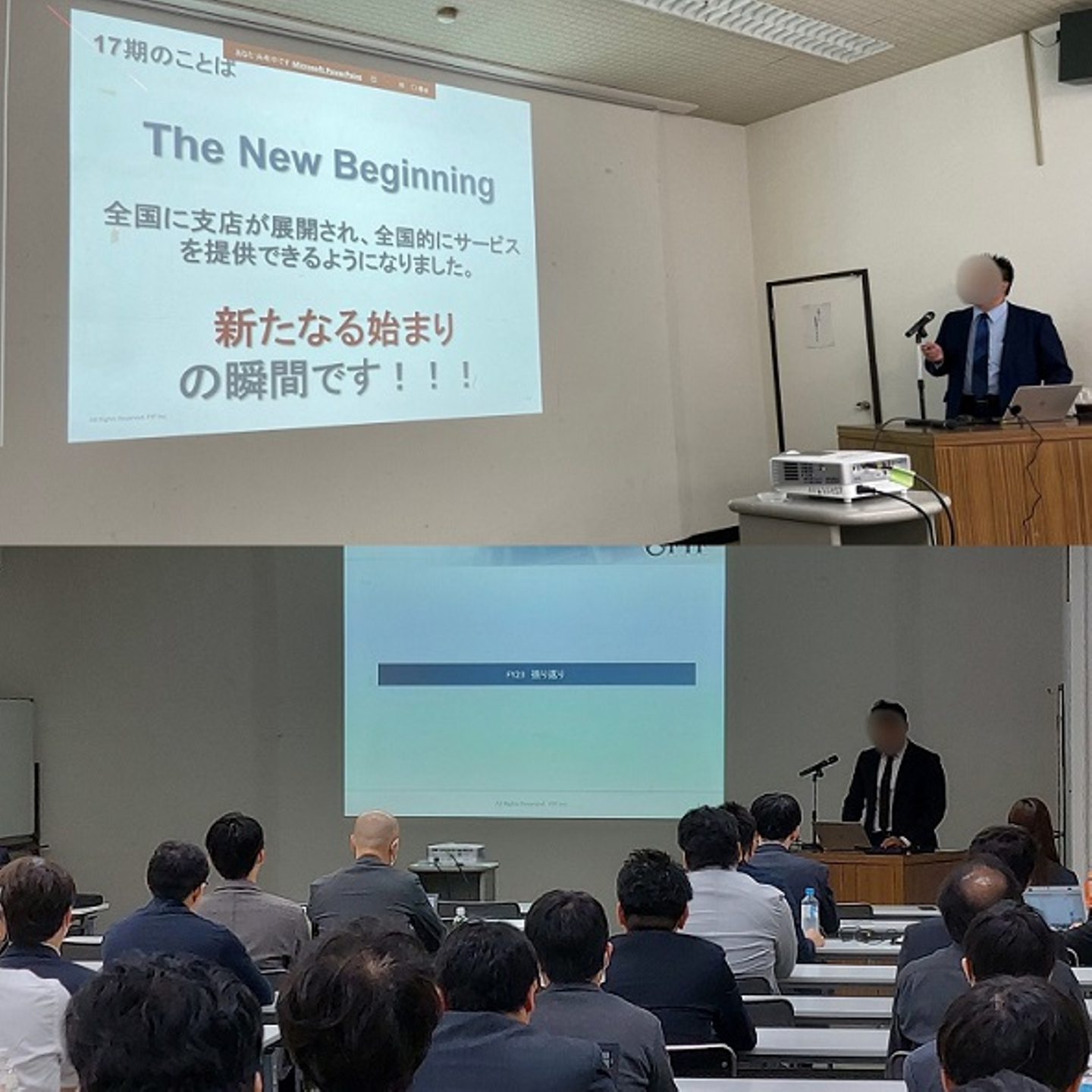 キックオフミーティングは、本社・支店メンバー全員が参加する形で行っておりますが、コロナ禍に入ってからは、感染症対策のため、支店メンバーは各支店からのリモート参加へ変更しておりました。今回は約3年半振りに支店のメンバーも集まって、キックオフを開催することができました。いつも本社でキックオフを開催しているのですが、今年は会議室を借りて、キックオフミーティングを行いました。