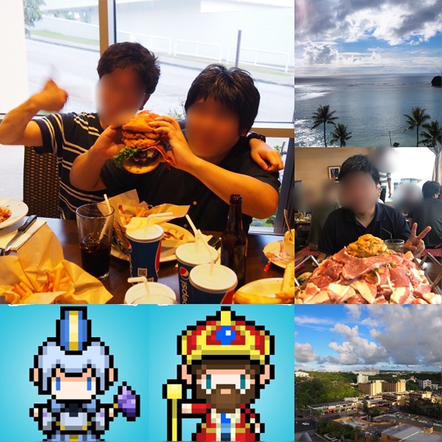 左上の写真は、2018年の社員旅行@グアムでの軍司と王様です。