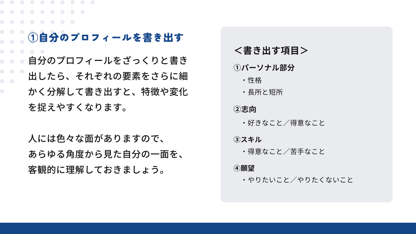 ①自分のプロフィールを書き出す