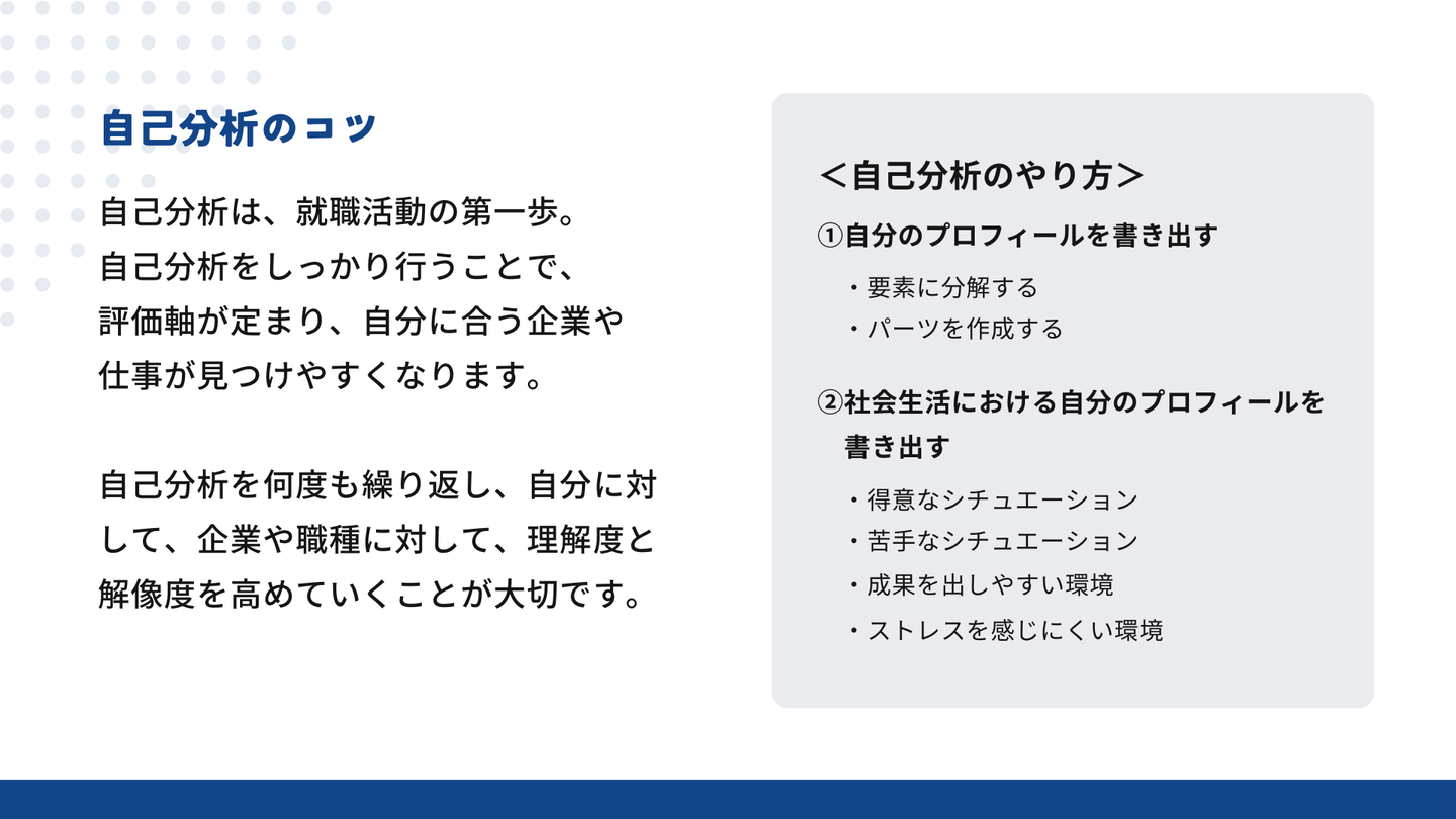 「自己分析のコツ」について、解説させていただきました。
