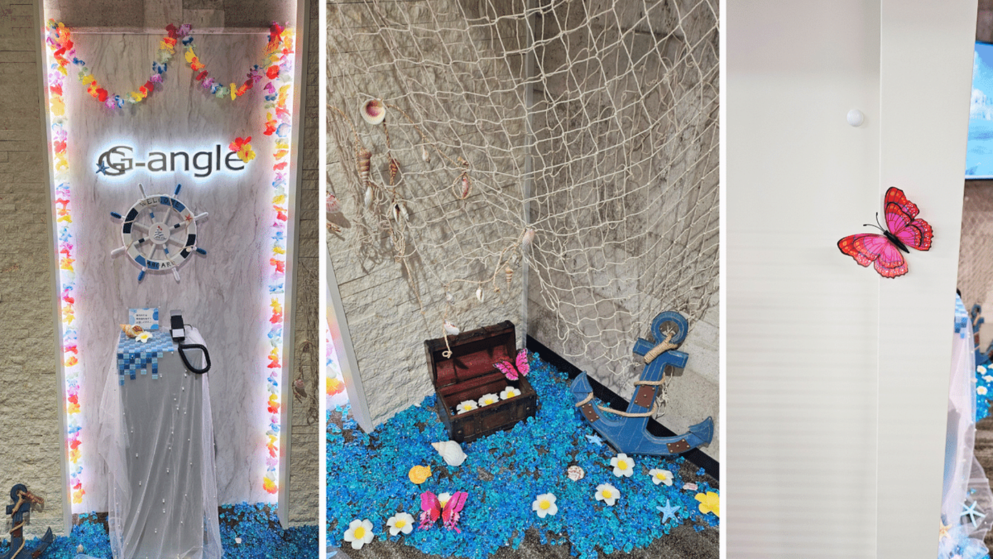 ジーアングルらしいクリエイティブな遊び心も込めながら、社員みんなで「どうしたらお客様に喜んでもらえるかな?」と毎年少しずつ工夫を重ね、実際に飾り付けまで自分たちで実施しています!
