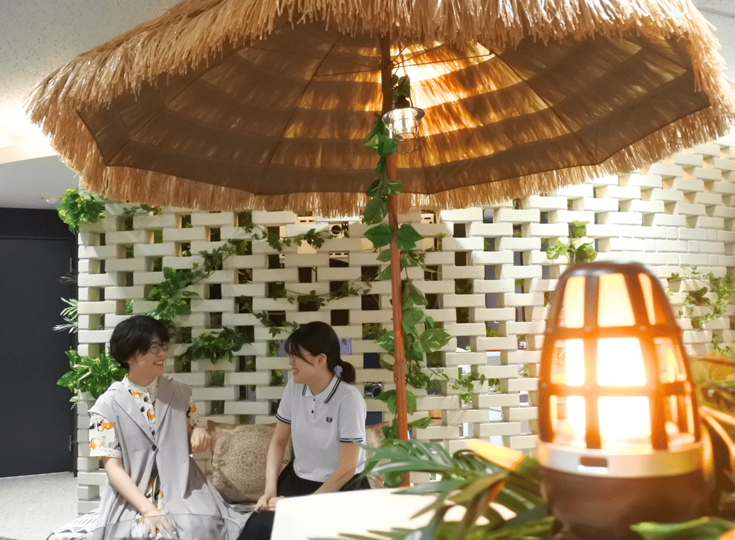 本社オフィスとはまた一味違う雰囲気ですが、こちらもリゾート気分が味わえる空間になっています。
