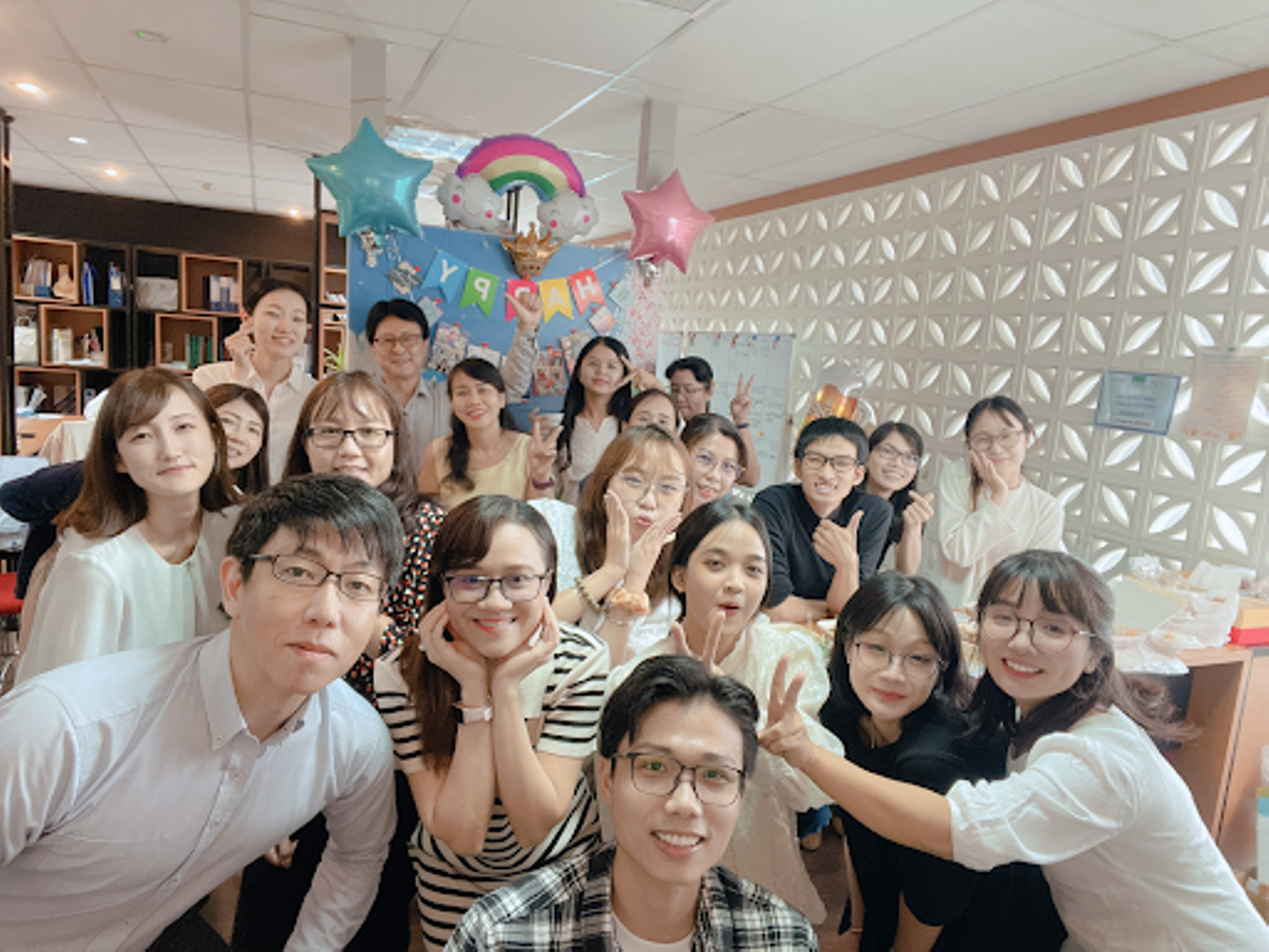 写真:若くて元気な子が多いベトナム人スタッフと。(手前左が関)