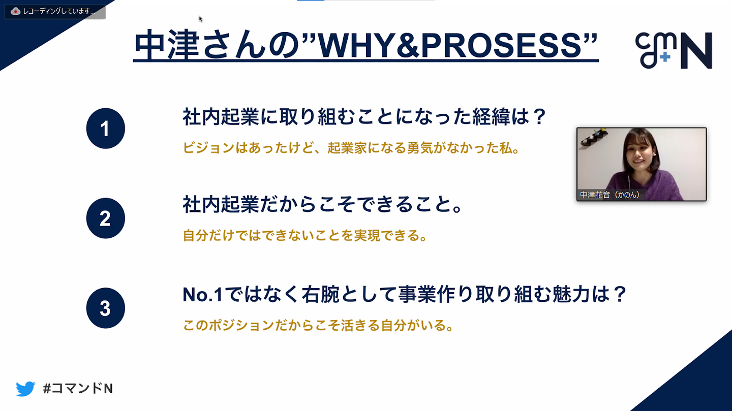 ゲストに、株式会社Gaiaxで「Command”N」の事業運営全般に関わる中津花音さんと、同じく株式会社Gaiaxで社内コーチを務める宇田川寛和さんをお招きしました。