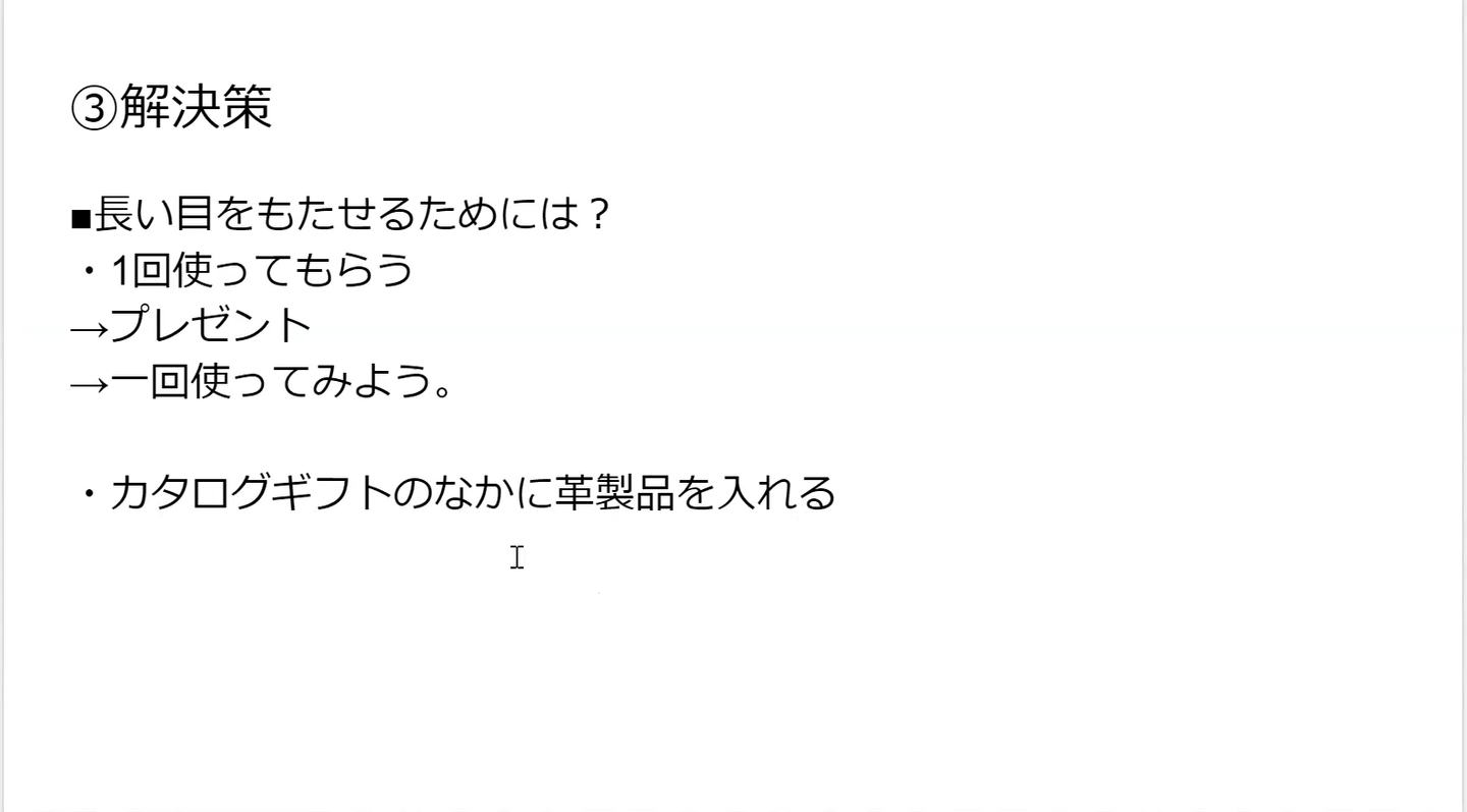3つ目のチームは、「カタログギフトに搭載してプレゼントとして選んでもらう」「若い人々が源担ぎとして購入してもらう」を提案。