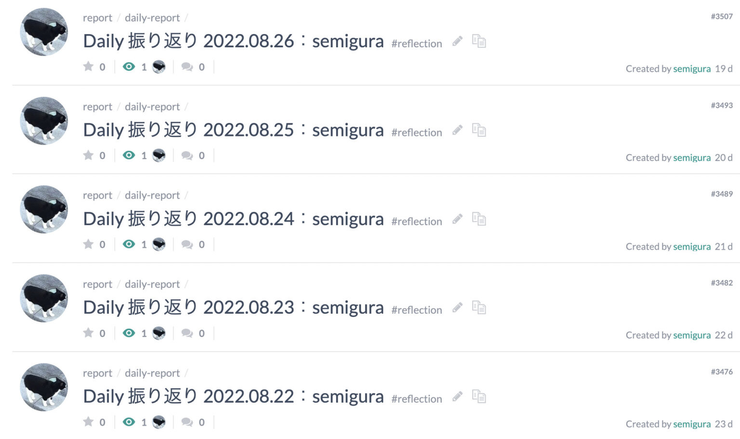 最近は実案件で進行管理を担うこともあり、より自分やチームを振り返って知見や失敗を棚卸しして次に活かすということの重要性を感じているのですが、その根っこにあるのはやはり振り返り日報だと思います。