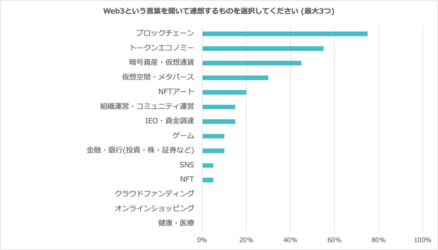 Web3という言葉を聞いて連想するものを選択してください (最大3つ)