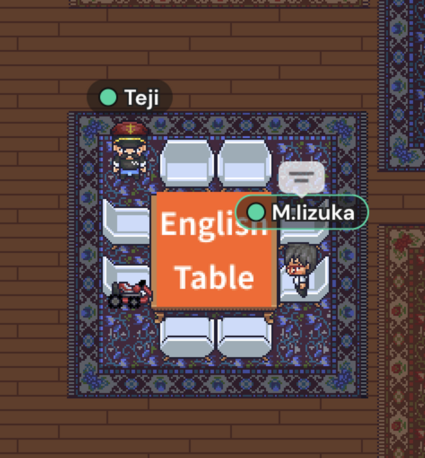 ※毎週木曜日夜、チャンネルのメンバーはこのテーブルに集まって各自英語学習の時間を取っています。