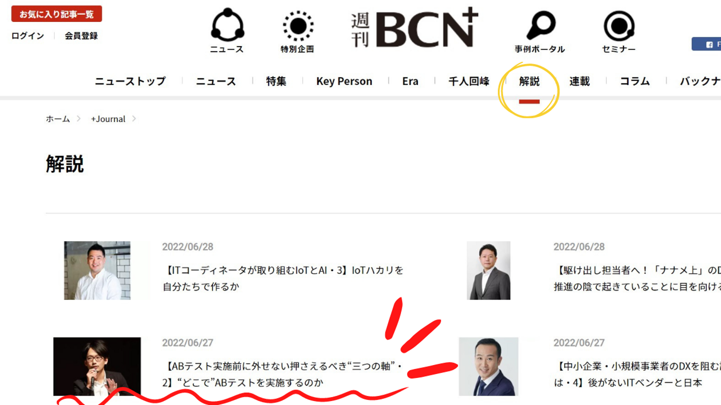 2022年6⽉28⽇公開の週刊BCN+にて、当社カスタマーサクセスチームマネージャーの鎌田が執筆したABテストの記事コンテンツvol.2が掲載されました。今回は「"どこで"ABテストを実施するのか」を解説しています。vol.3もお楽しみに!
