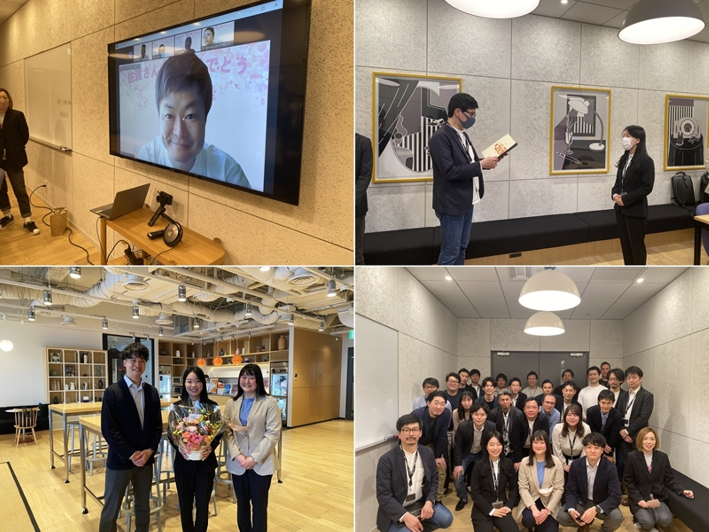 当日はCOO土井からの入社証書授与に加え、配属部門の事業部長や先輩、昨年の新卒メンバーからの挨拶など、直接お祝いの言葉を伝えることができました。