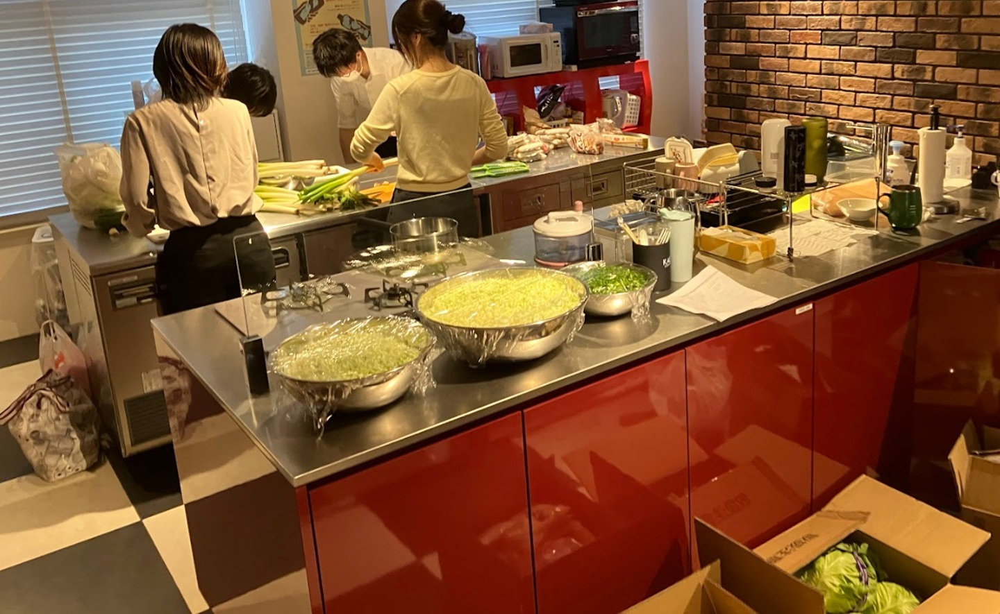 オフィスにいる社員が大量の食材をひたすら食材を切る姿