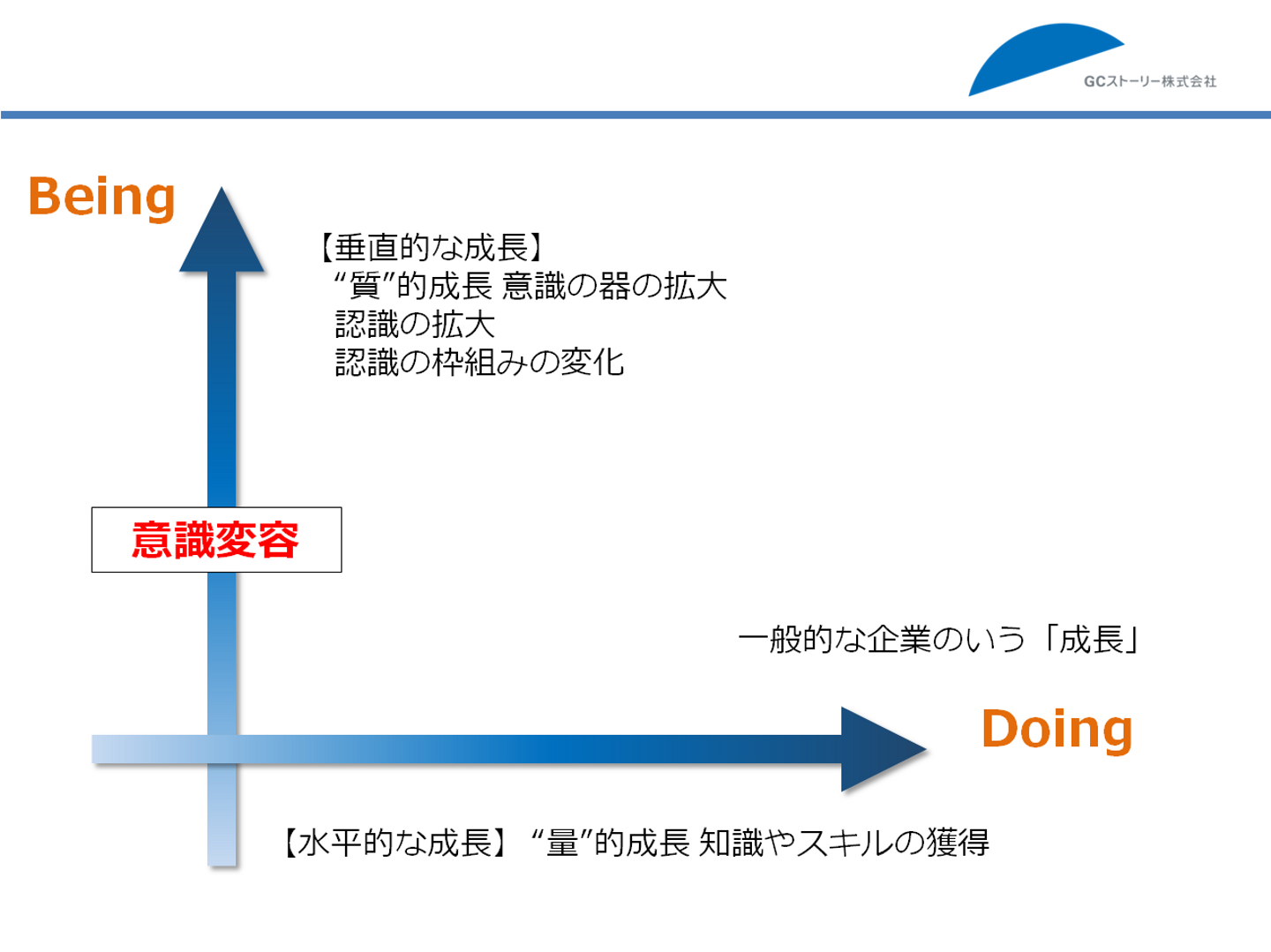水平的な成長は知識やスキルの獲得で、垂直的な成長は認識範囲の拡大により人間性が深まる成長を指します。