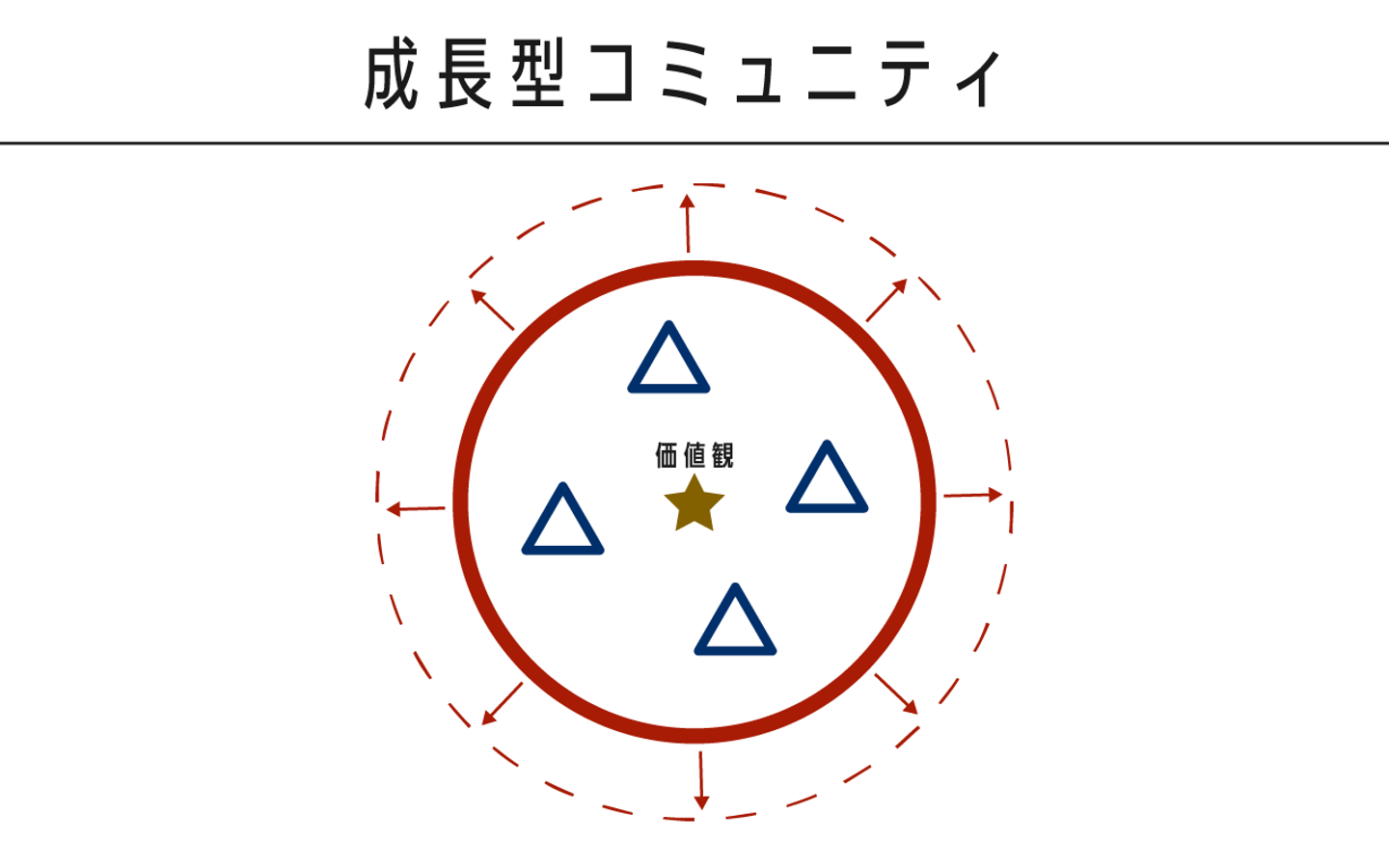 「成長型コミュニティ」は前提としてコミュニティですが、その中にチームの機能を持ち合わせています。