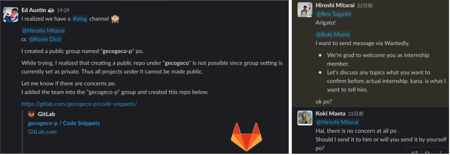 日系企業でも外国籍の人材を積極的に採用して、社内でのコミュニケーションを英語で行っている企業は増えてきています。しかし、gecogecoは他社と比べても英語の使用比率は高いと思っています。