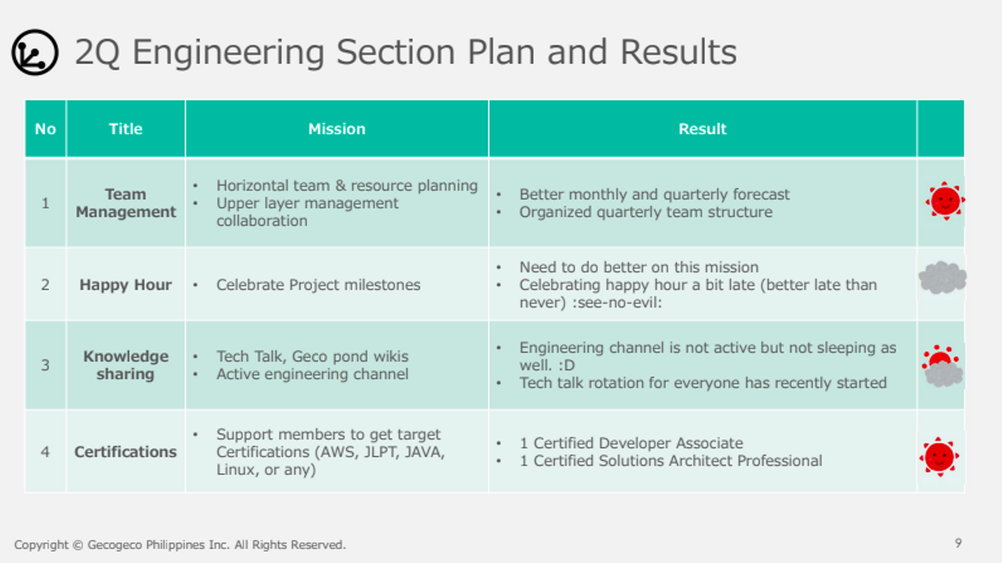 こちらは、クォーターごとに実施されるキックオフミーティングの資料です。