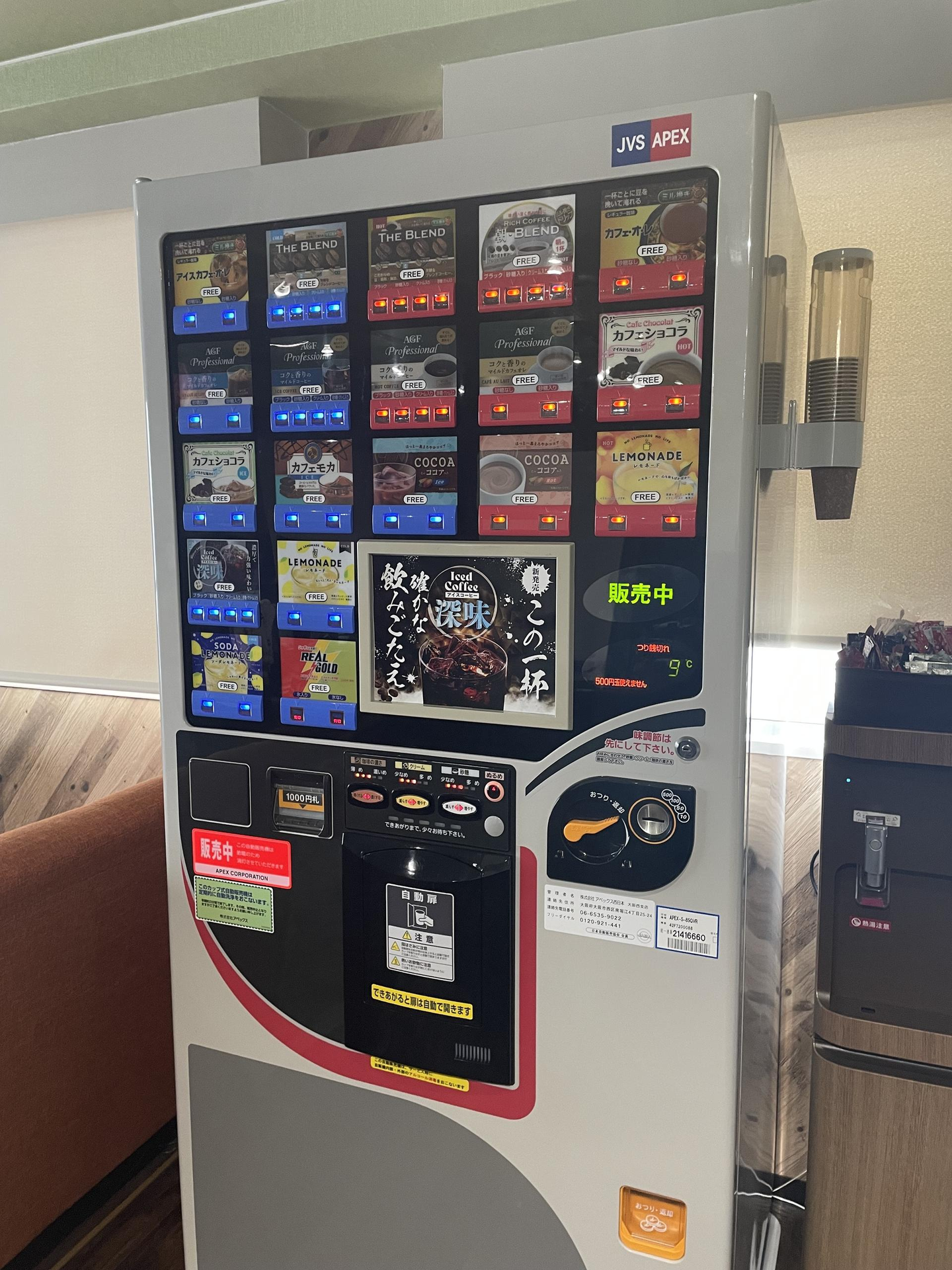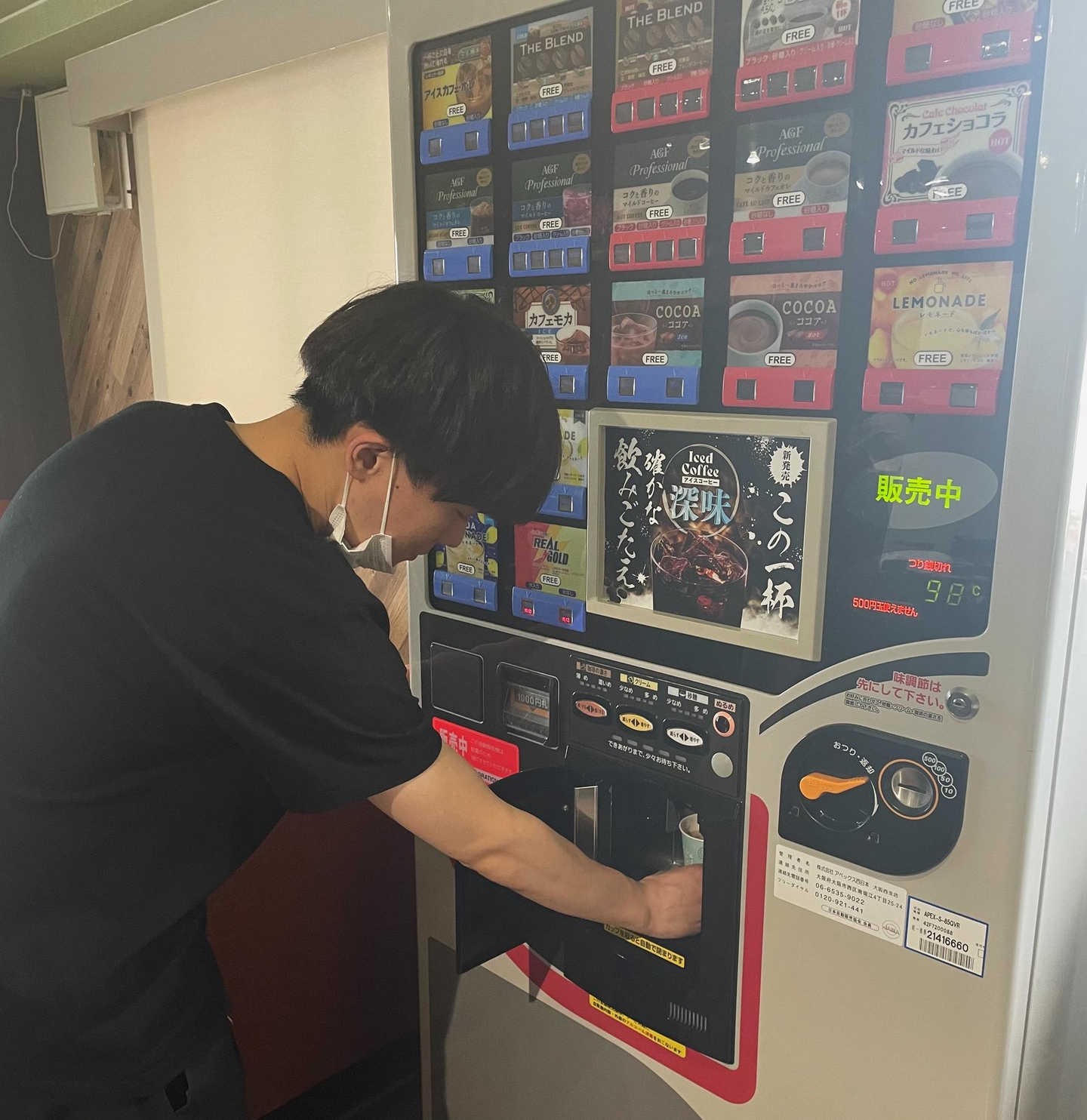 紙コップ式の自動販売機になります。飲み物の内容もたくさんの種類の中から好きにカスタマイズできます!🙋🏼♀️