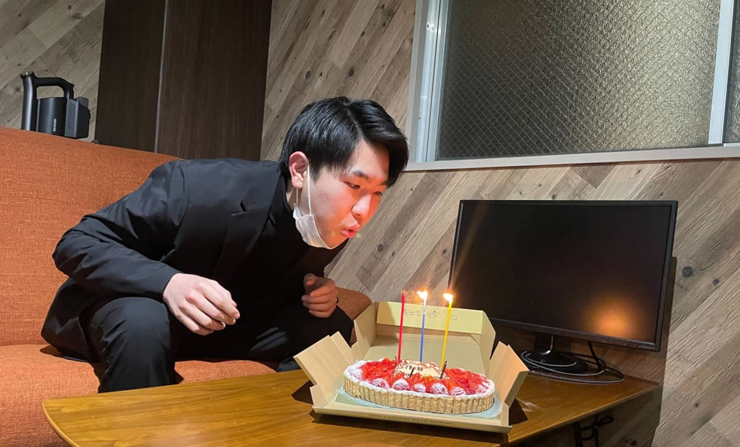 まずは先日、インターンメンバーの倖太朗がお誕生日を迎えたので、社内でお祝いしました!